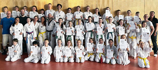 Erfolgreiche Kupprüfung Am Donnerstag, den 15. Mai, fand in der Schwarzwaldhalle in Schellbronn eine Taekwondo-Gürtelprüfung der besonderen Art statt. Mit insgesamt 38 Teilnehmerinnen und Teilnehmern war es die bislang größte Prüfung in der Vereinsgeschichte. Unter den aufmerksamen Augen von Prüfer Ibrahim Sönmezates vom Judoclub Pforzheim, Abteilung Taekwondo, zeigten die Sportler ihr Können. Unter anderem wurden Grundtechniken, Formenläufe (Poomsae), Selbstverteidigung sowie Einschrittkampf, Pratzensparring, Fallschule und Theorie geprüft. Auch ein Bruchtest sowie Freikämpfe demonstrierten eindrucksvoll das hohe Trainingsniveau der Prüflinge. Folgende Prüflinge haben bestanden: 8. Kup (gelber Gürtel): 7. Kup (gelb-grüner Gürtel): 6. Kup (grüner Gürtel): 5. Kup (grün-blauer Gürtel): 4. Kup (blauer Gürtel): 3. Kup (blau-roter Gürtel): Alle Prüflinge überzeugten mit starken Leistungen und konnten sich am Ende über ihre neuen Gürtelgrade freuen. Das gesamte Trainerteam freut sich mit allen Teilnehmern und gratuliert allen recht herzlich.